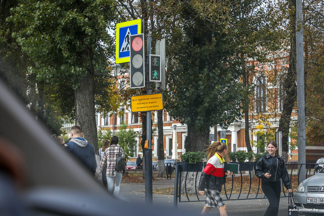 — Еще я заметил, что в Гомеле пешеходные переходы часто расположены на отдалении от перекрестков. Это не очень удобно для пешеходов — нужно дальше идти. Зато на перекрестках взаимодействуют только водители. В этом плане удачное решение, потому что если как в Минске, то нужно пропускать пешеходов и одновременно смотреть на машины — некоторые не справляются. А здесь риски попытались минимизировать. Вот еще одно подтверждение того, что любое решение — это компромисс. Что удобно водителям — не всегда удобно пешеходам, — говорит инструктор.