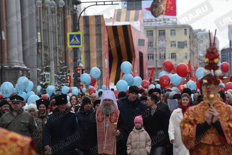 Под бой барабанов процессия пошла по улицам Куйбышева и 8 Марта, проспекту Ленина и улице Толмачева. Во время шествия священники окропляли горожан святой водой. «Конечно, я радуюсь. Столько людей участвуют в Крестном ходе. У нас в семье принято посещать службы и печь куличи на Пасху», — поделилась Татьяна, одна из участниц, с URA.RU.