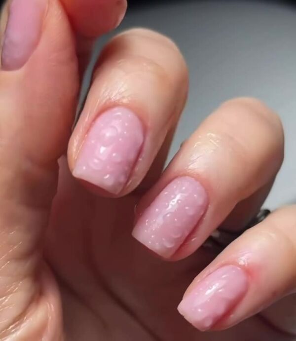 Подобный 3D-эффект легко создать, используя прозрачный гель-лак для объемных дизайнов. Сначала сделайте привычный маникюр и после нанесения фиксирующего топа добавьте к нему капли с помощью геля и инструмента «ручка», а потом высушите в лампе.