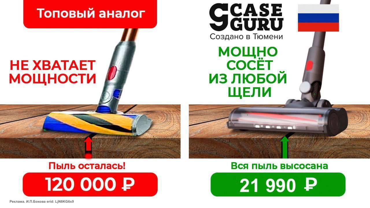 Вертикальный пылесос CaseGuru – тюменский «Дайсон на максималках». Весит 2 кг – в 1,5 раза легче именитого «британца». Мощность всасывания на 20% больше, чем у «британца». А стоит – в ШЕСТЬ раз ДЕШЕВЛЕ.