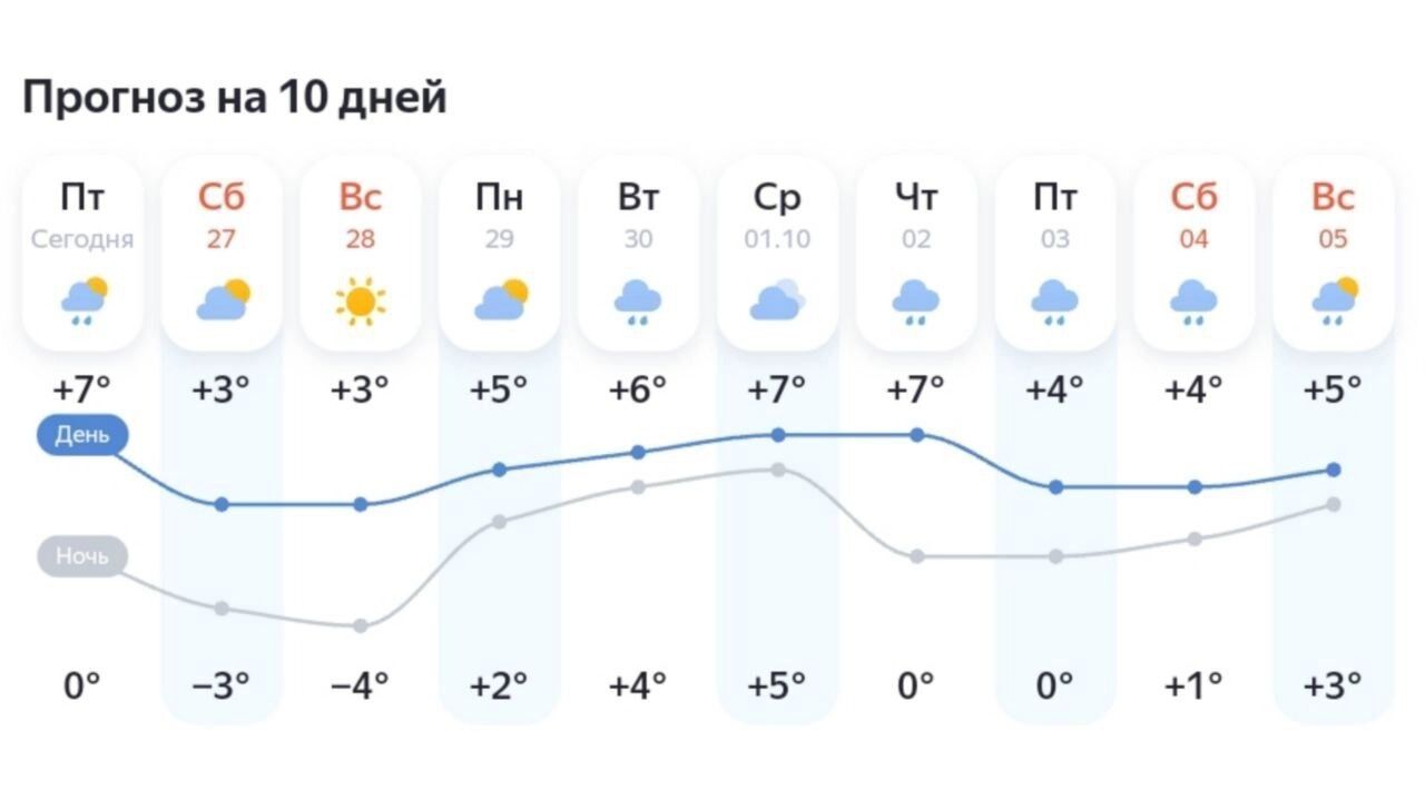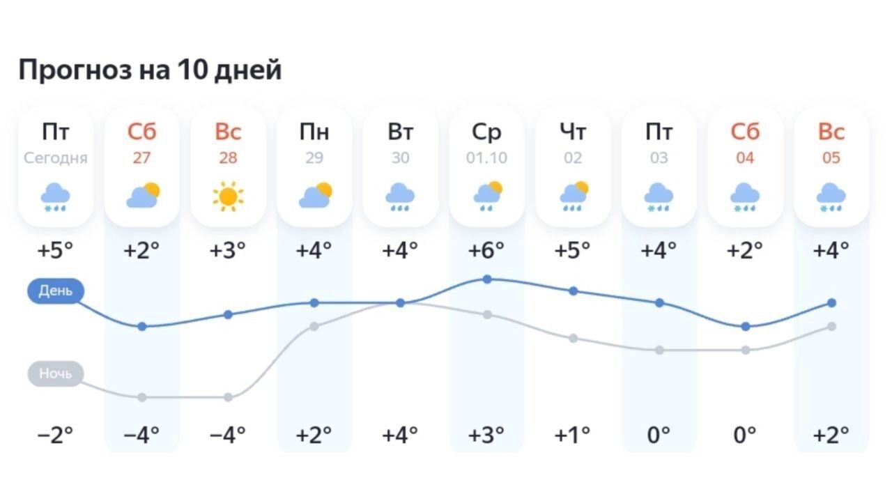 В воскресенье, 28 сентября, днем будет до +2…+7 градусов, ночью — до -8…-3 градусов. В этот день синоптики осадков не обещают, хотя в более раннем прогнозе снег должен задержаться до начала следующей недели. Ветер — северо-восточный, 5-10 м/с.