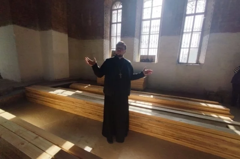 Но сначала отправляемся в храм Казанской иконы Божией Матери, чьи купола видны из двора детсада. «Очень символично», - отмечает Ирина Никифорова. Встречает нас молодой симпатичный настоятель. Отец Илья служит здесь недавно, но прикладывает максимум усилий, чтобы с Божьей помощью и с поддержкой односельчан, колхоза и районной администрации поскорее вернуть храму былое величие. Могучее, но при этом совсем не тяжеловесное здание устояло при трёх взрывах, которыми его пытались разрушить в 1930-х. Толщина стен – метр и три сантиметра. Внутри и снаружи идут работы. Не быстро, но видно, что ритмично и целенаправленно. Возвращаются и старинные иконы. Настоятель показывает нам особо ценные – Николая Чудотворца и Александра Невского. Они были в храме с момента постройки в 1916 году. Лики сохранили сельчане, тайком от советских властей передавая их из поколения в поколение.