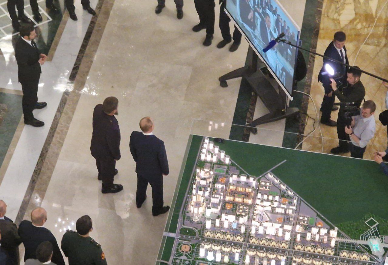 Продемонстрировал Владимиру Владимировичу макет нового района Грозного имени В.В.Путина. Это грандиозный инвестиционный проект, который станет украшением столицы Чеченской Республики – комплекс жилых домов и объектов социальной инфраструктуры. Общая площадь строительных работ в Чеченской Республике сегодня составляет более 6,3 млн кв.м.