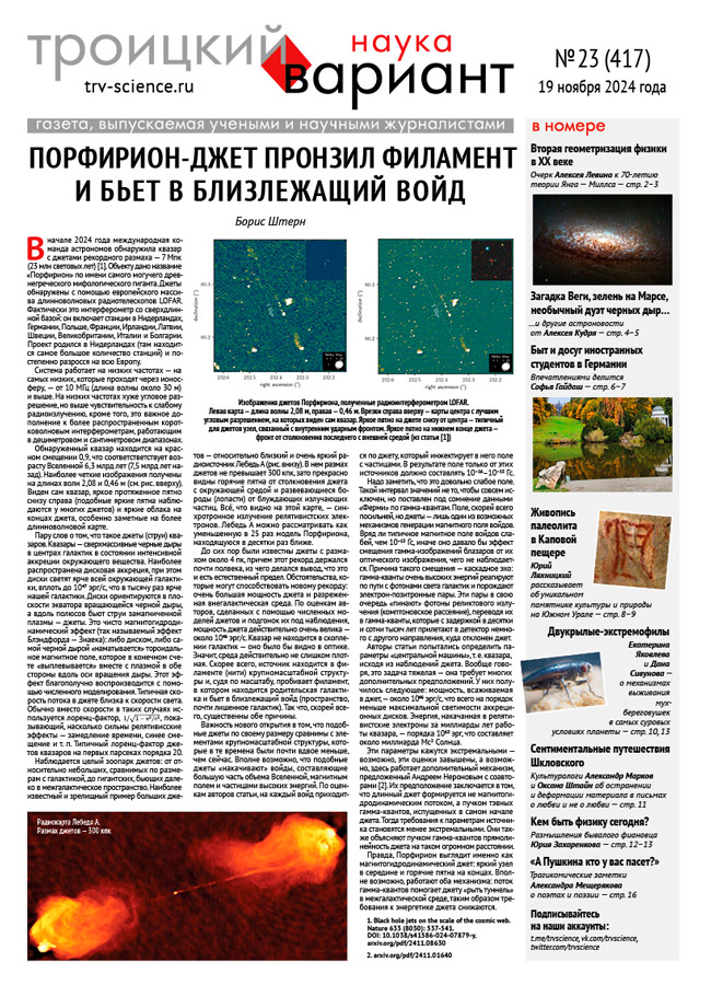 анонс номера. «Троицкий вариант — Наука» №23(417), 19 ноября 2024 года