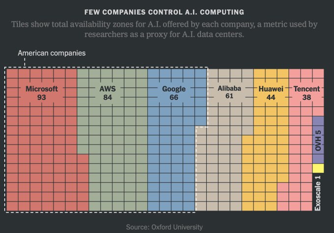Американские компании управляют почти 2/3 центров обработки данных ИИ в мире. И только 16% стран имеют центры обработки данных ИИ.