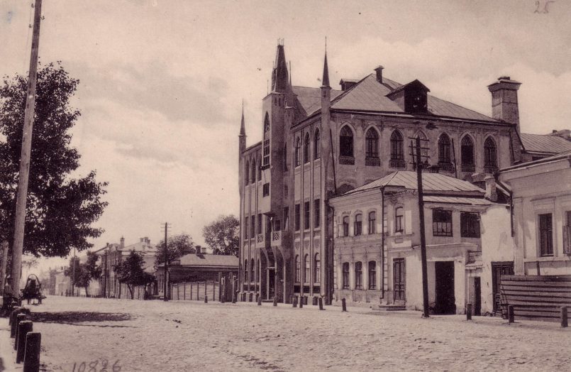 Жители города, которые были первыми строителями каменных домов, были люди торговые, и их постройки носили характер примитивный, плоский, ящикообразный, без украшений и вычур.