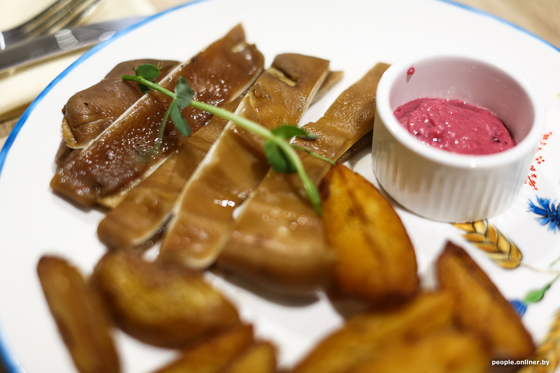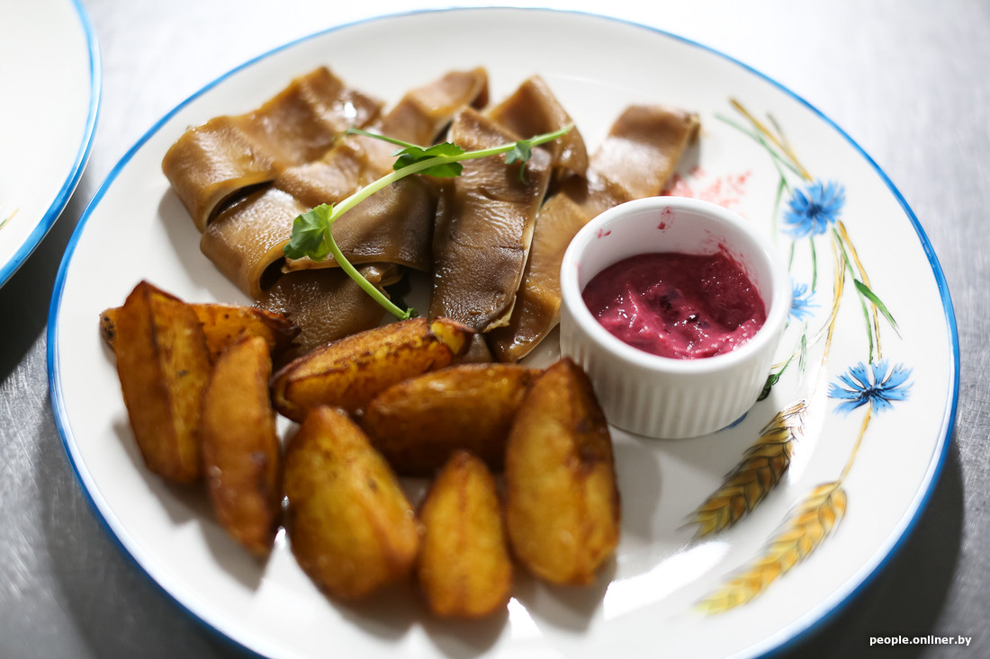 Неожиданно Константин задает вопрос, к которому мы явно не были готовы: «Любите ли вы уши?» Долго не думая, отвечаем: «Да». Вот так легко мы заказали одно из любимых блюд шефа: в меню оно значится как «Раков» и относится к белорусской кухне. На самом деле среди названий по типу «Барселона» или «Санторини» это тоже своего рода экзотика.