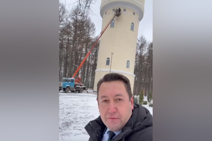 В Новомосковске Тульской области начались работы по монтажу трехуровневой подсветки на водонапорной башне в Березовой роще.