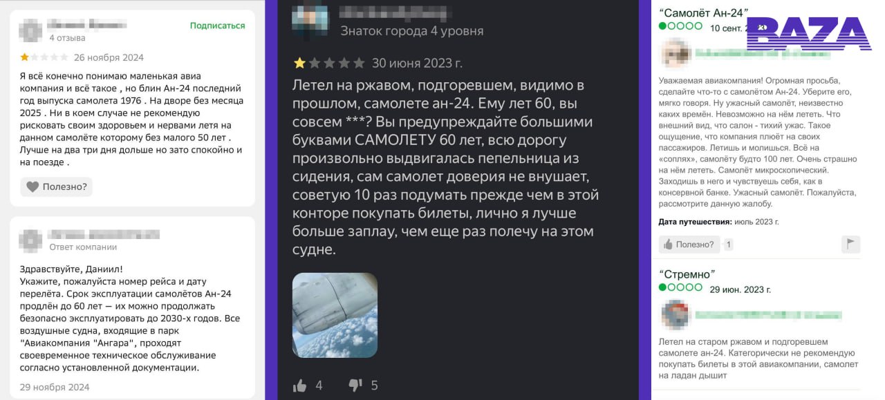 Страшные отзывы пассажиров авиакомпании «Ангара», летавших на Ан-24. Судя по ним, на самолетах (они выпущены в середине 70-х) летать было как минимум неприятно.