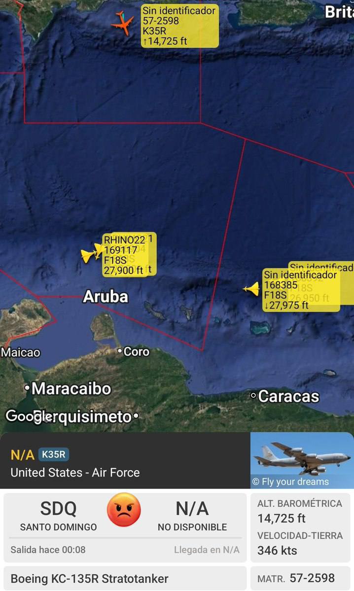 Политджойстик / Politjoystic ™6 дней назад ФОТО Началась и активизация у Венесуэлы. …2 истребителя-бомбардировщика Growler и 2 истребителя Super Hornet. Плюс стратегический танкер - дозаправщик, вылетающий из Доминиканской Республики в направлении юга. Темы и тегиДоминиканская РеспубликаВоенные Действияgrowler истребитель-бомбардировщик активизация hornet дозаправщик super истребитель танкер стратегический направление