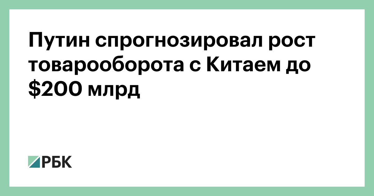 По итогам текущего года товарооборот России и Китая превысит $200 млрд, заявил президент Владимир Путин на переговорах с китайской делегацией во главе с председателем КНР Си Цзиньпином.