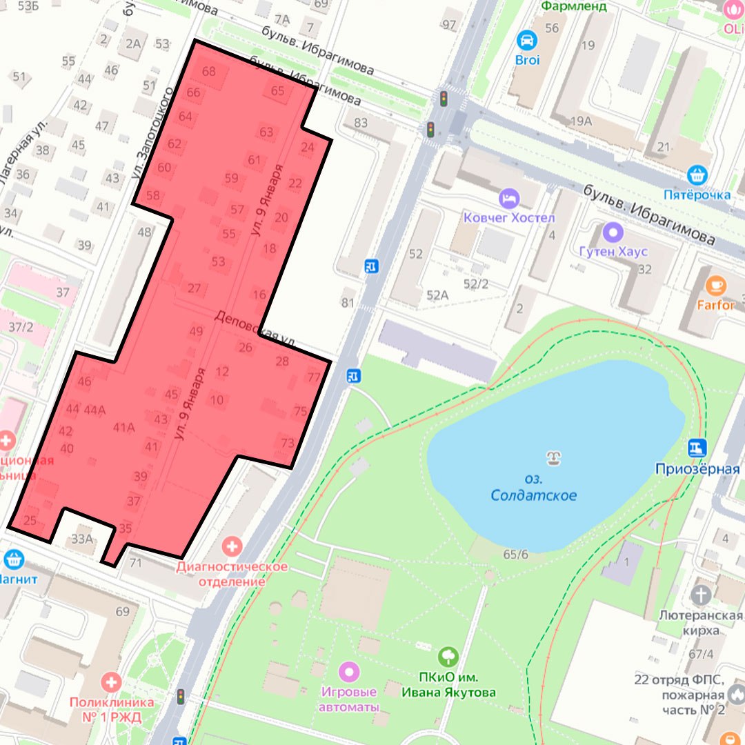 В Уфе планируют застроить территорию за парком Якутова. Для этого будут снесены более частных 40 домов.