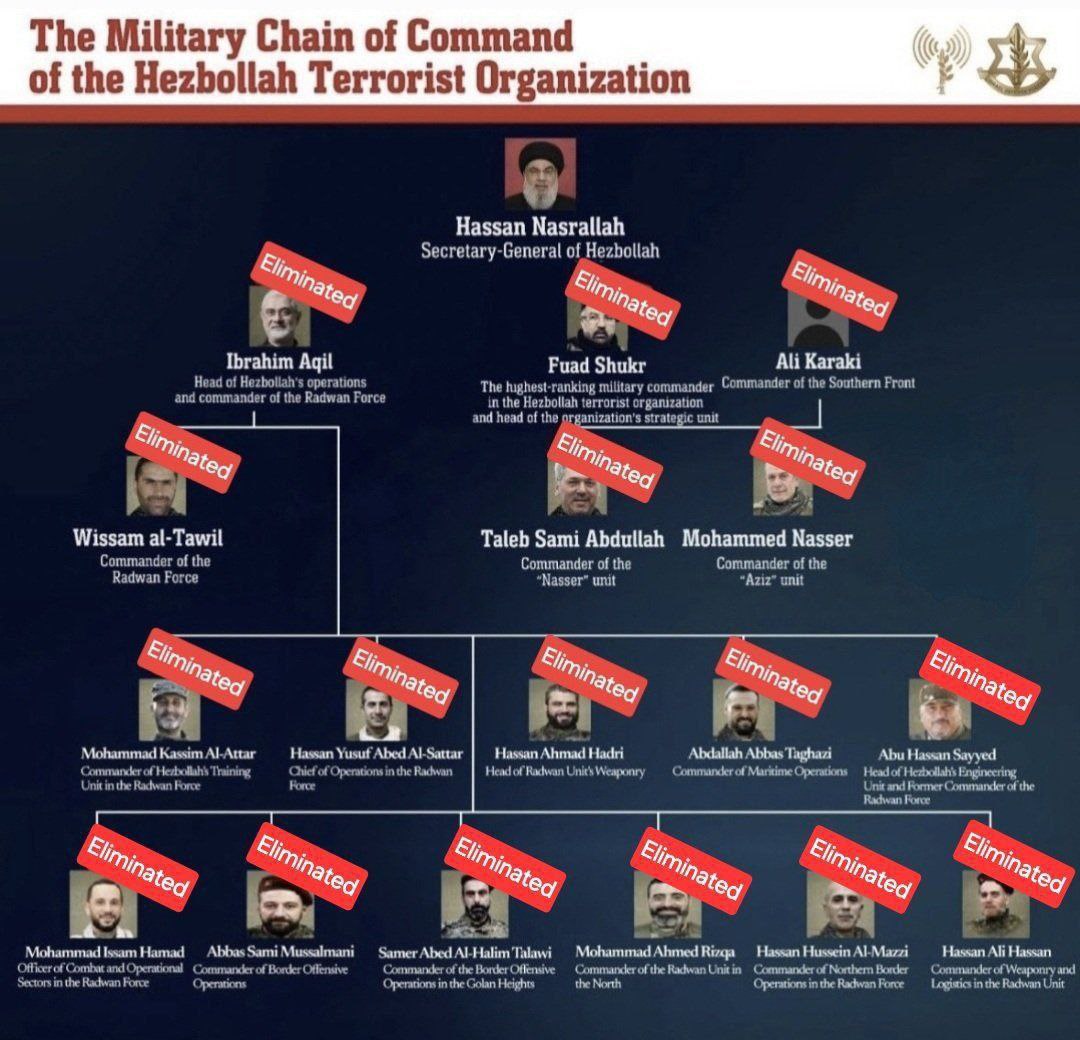 Армия обороны Израиля заявила об уничтожение всей верхушки командования "Хезболлы".
