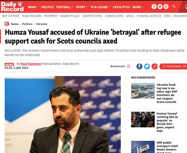 Министры заявили, что в ноябре из Украины прибыло 17 463 человека, и многие из них были расселены в отели и круизные суда. На жилье беженцам в прошлом году выделили 10 миллионов фунтов стерлингов, но за несколько дней до Рождества министр Хамза Юсаф отменил дотации.
