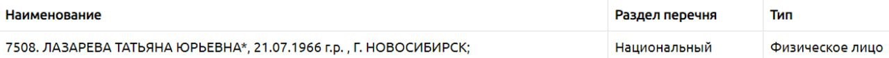 ❗️Экс-телеведущая Татьяна Лазарева* также внесена в перечень террористов и экстремистов