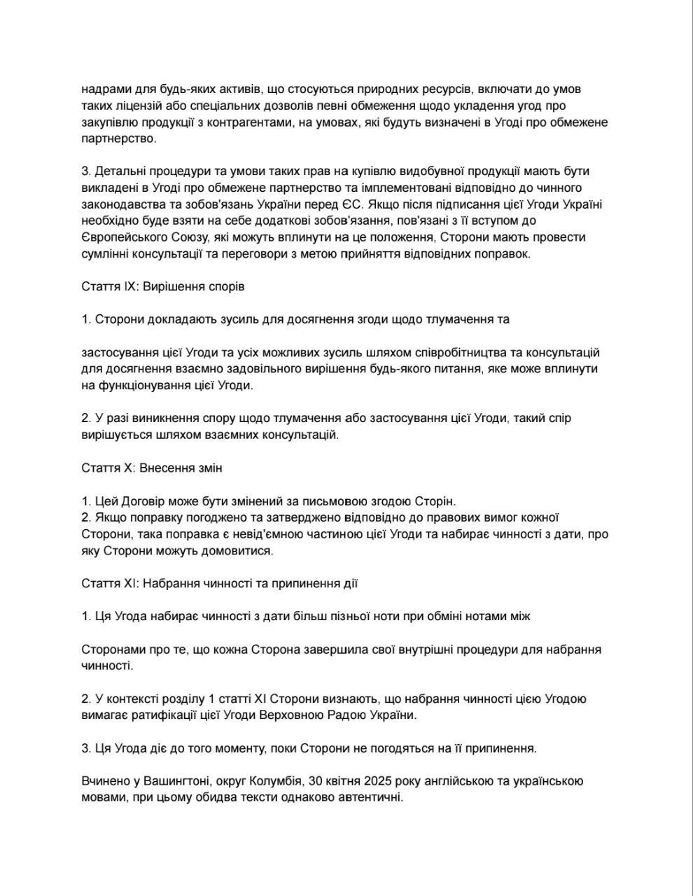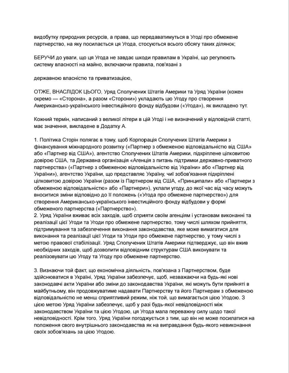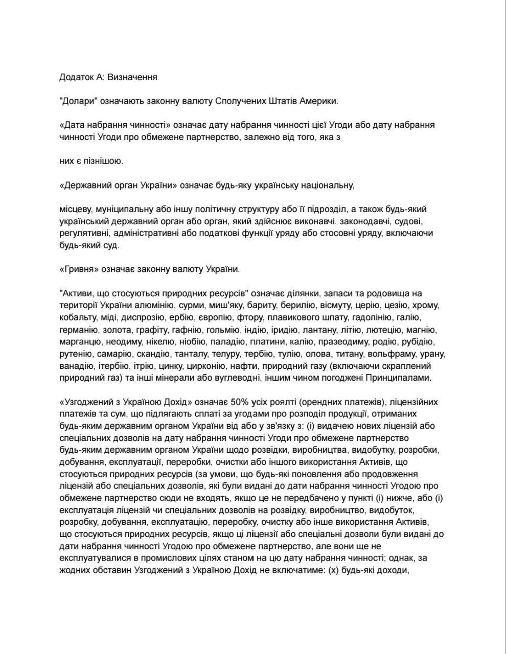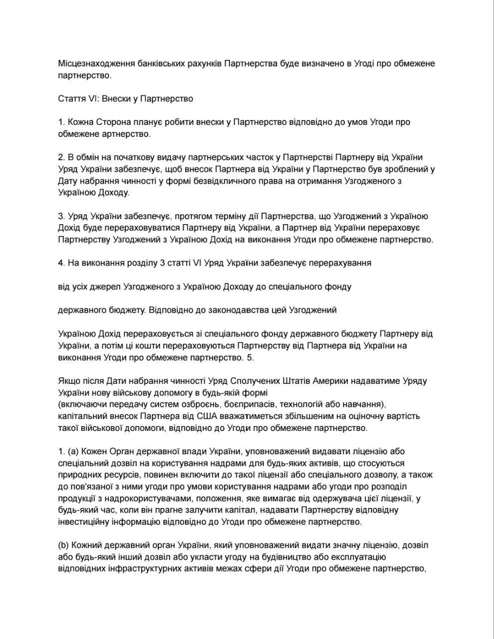 Проект соглашения о полезных ископаемых между Украиной и США в текстовом формате