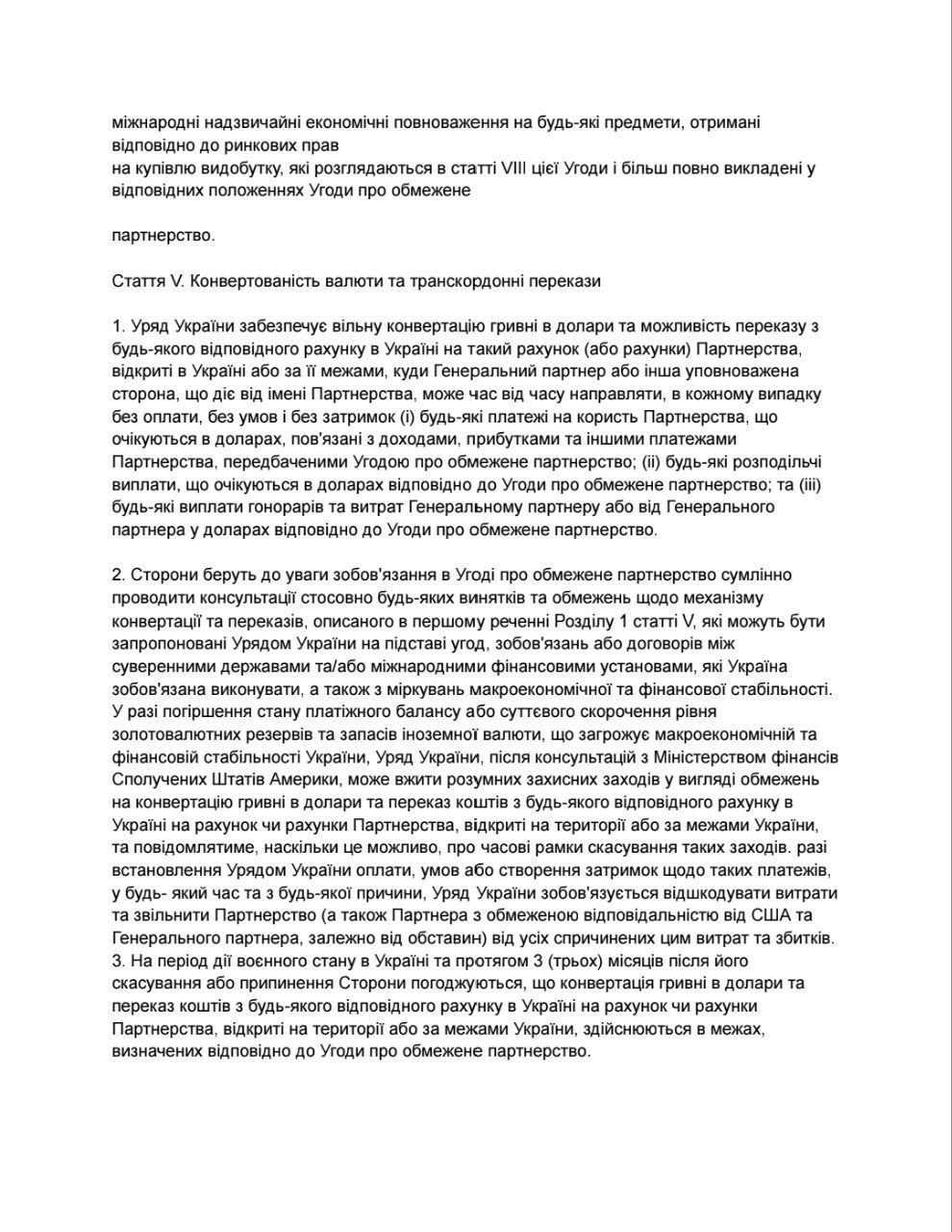 ✔️Все платежи в рамках Соглашения не облагаются налогом ни Украиной, ни США. Украина гарантирует свободную конвертацию гривни в доллары и беспрепятственное перечисление средств на счета партнерства как внутри страны, так и за рубеж - без задержек.
