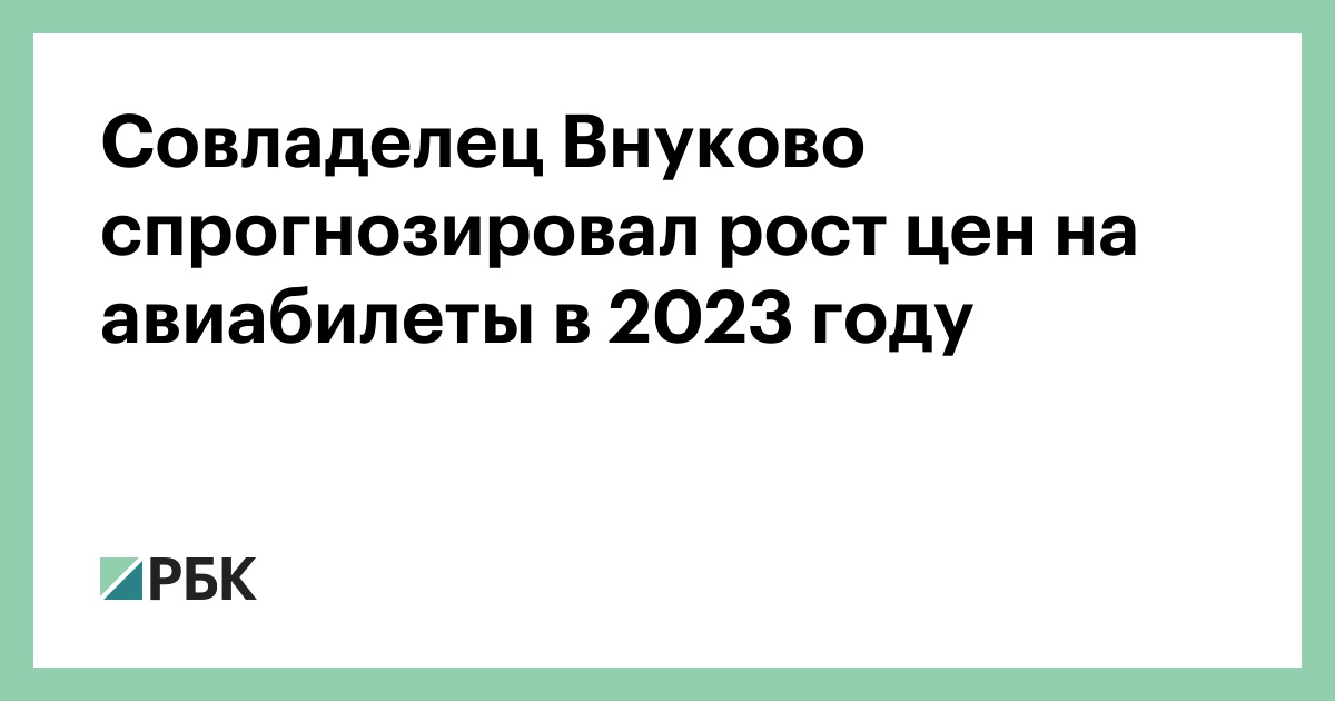 Авиабилеты на внутрироссийские рейсы в 2023 году вырастут на 15-20%, а рост цен на международные полеты составит до 40%. Об этом в интервью РБК заявил совладелец Внуково и авиакомпании «Азимут» (по итогам первого квартала 2023 года перевезла 0,5 млн пассажиров и вошла в топ-10 российских перевозчиков) Виталий Ванцев.