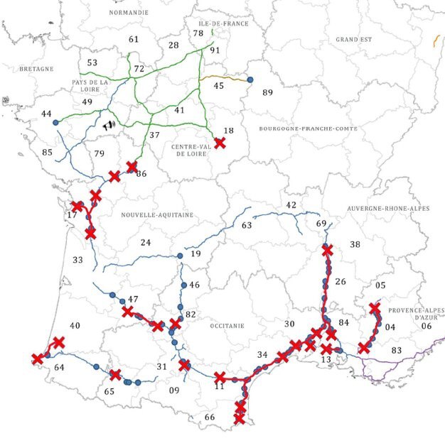 ❗️Масштаб протестов французских фермеров во Франции на карте оператора автодорог.