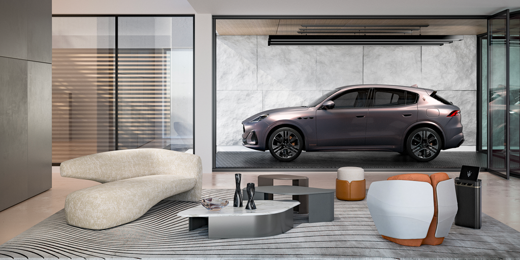 Algunas de estas piezas son Nereide -símbolo de sabiduría y poder-, un sofá modular que reposa en una plataforma de madera maciza de fresno, Seidon, un sillón inspirado en las sinuosas líneas de los coches, Ligea, una mesa de centro que reinterpreta las formas de las tomas de aire de los automóviles con un diseño dinámico y sofisticado, o Sibilia, una mesa de centro con un elemento vertical que evoca la resonancia del viento.