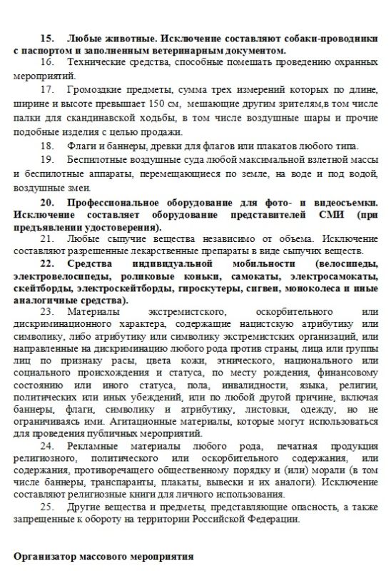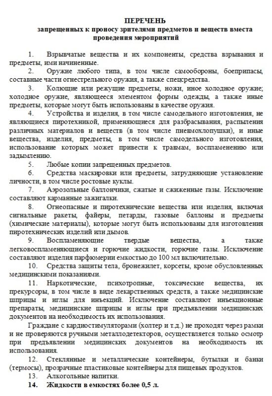 Список предметов, которые нельзя проносить на фестиваль. Изображение: документ облправительства