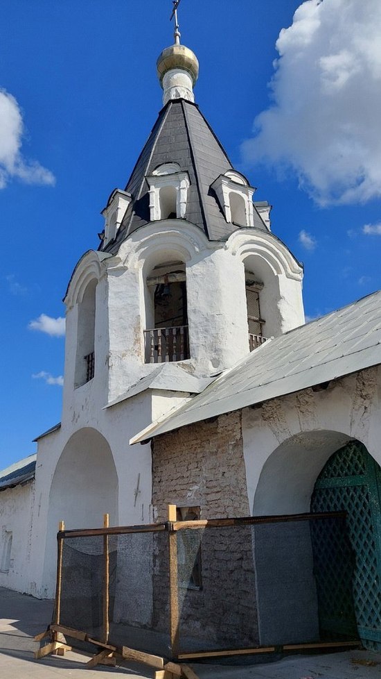 Специалисты в рамках работ вырубают деревья и кустарники, а также обустраивают распорные конструкции сводов церкви. Также усилят фасадные стены, проведутинъекционные работы аварийных участков апсиды церкви и фрагментов фасада колокольни.