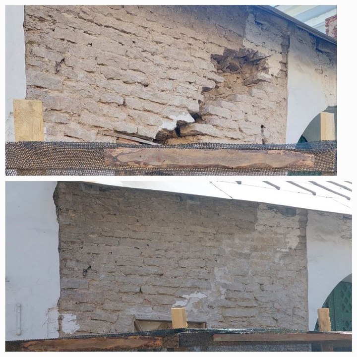 Первоочередные противоаварийные работы начались в храме Архангелов Михаила и Гавриила в Пскове