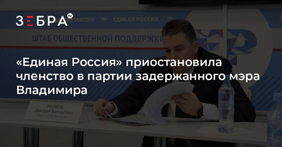27 августа местное отделение партии «Единая Россия» в городе Владимире приняло решение приостановить членство мэра столицы Владимирской области Дмитрия Наумова в партии после появления новостей о его задержании. В пресс-службе регионального отделения «Единой России» Зебра ТВ сообщили, что соответствующие документы находятся «в стадии оформления». Примечательно, что Наумов уже не числится в Политсовете областной партийной организации.