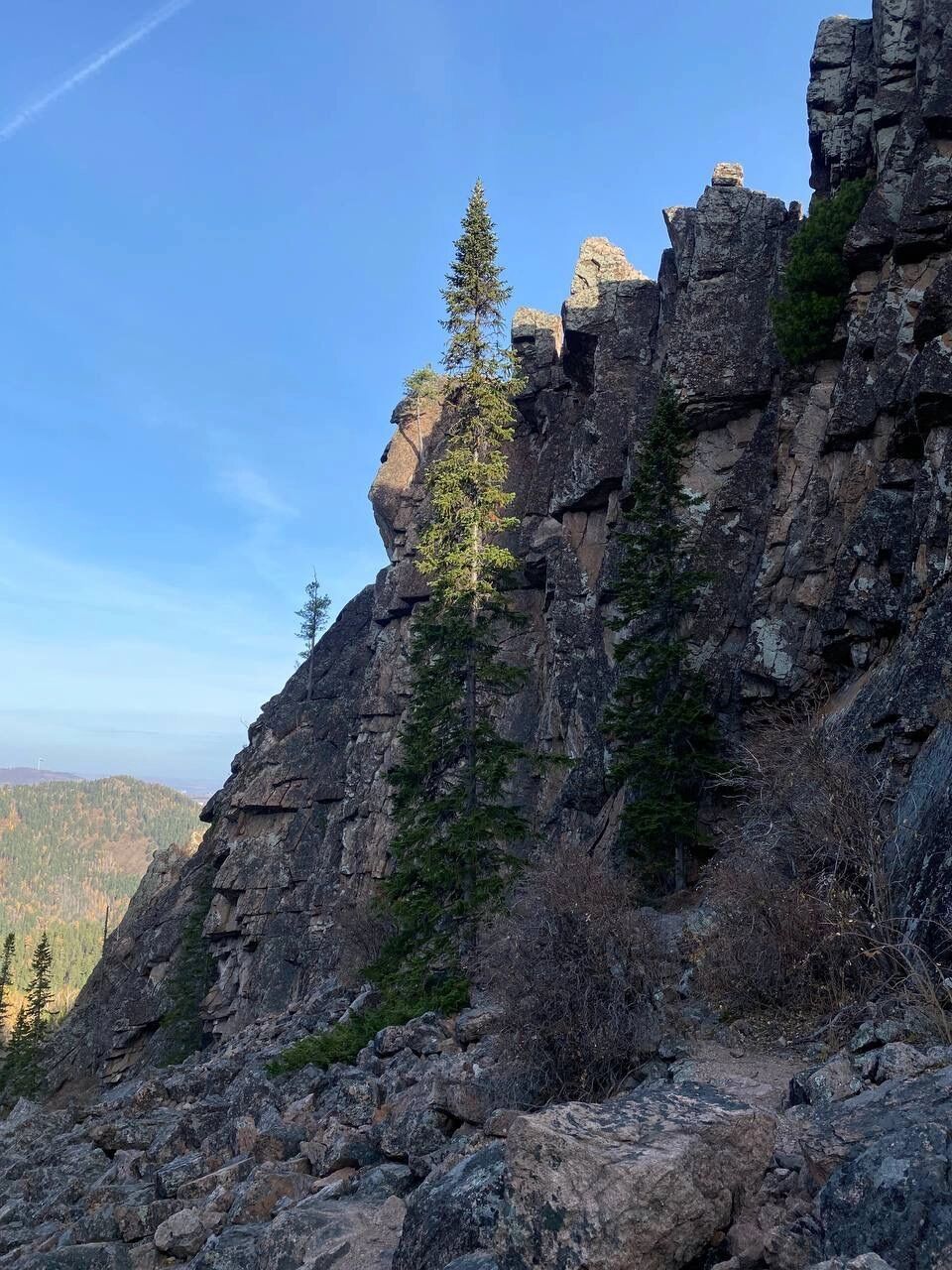 Дальше идём в сторону Китайской стенки и закольцовываем маршрут. Если никогда не ходили таким маршрутом — в помощь приложение «Хайкинг Красноярска». На восточном входе есть хорошая детская площадка, кофейня, туалет. Можно провести время и с семьей. Маршрут доступен и детям, главное — никуда не торопиться и шагать в их темпе».