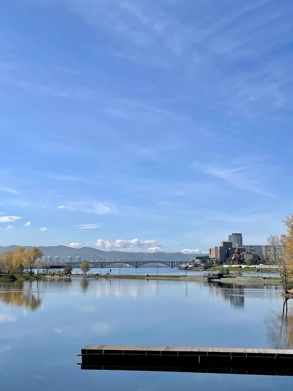 «Люблю новый променад от Предмостной в это время года — ближе к вечеру особенно хорошо, набережные правобережные. Но отдельно, наверное, выделю сквер Энтузиастов. В мае и сентябре тут сезоны красок, а Енисей в солнечную погоду отливает синевой. Эти золотые и синие оттенки осенью очень хороши».