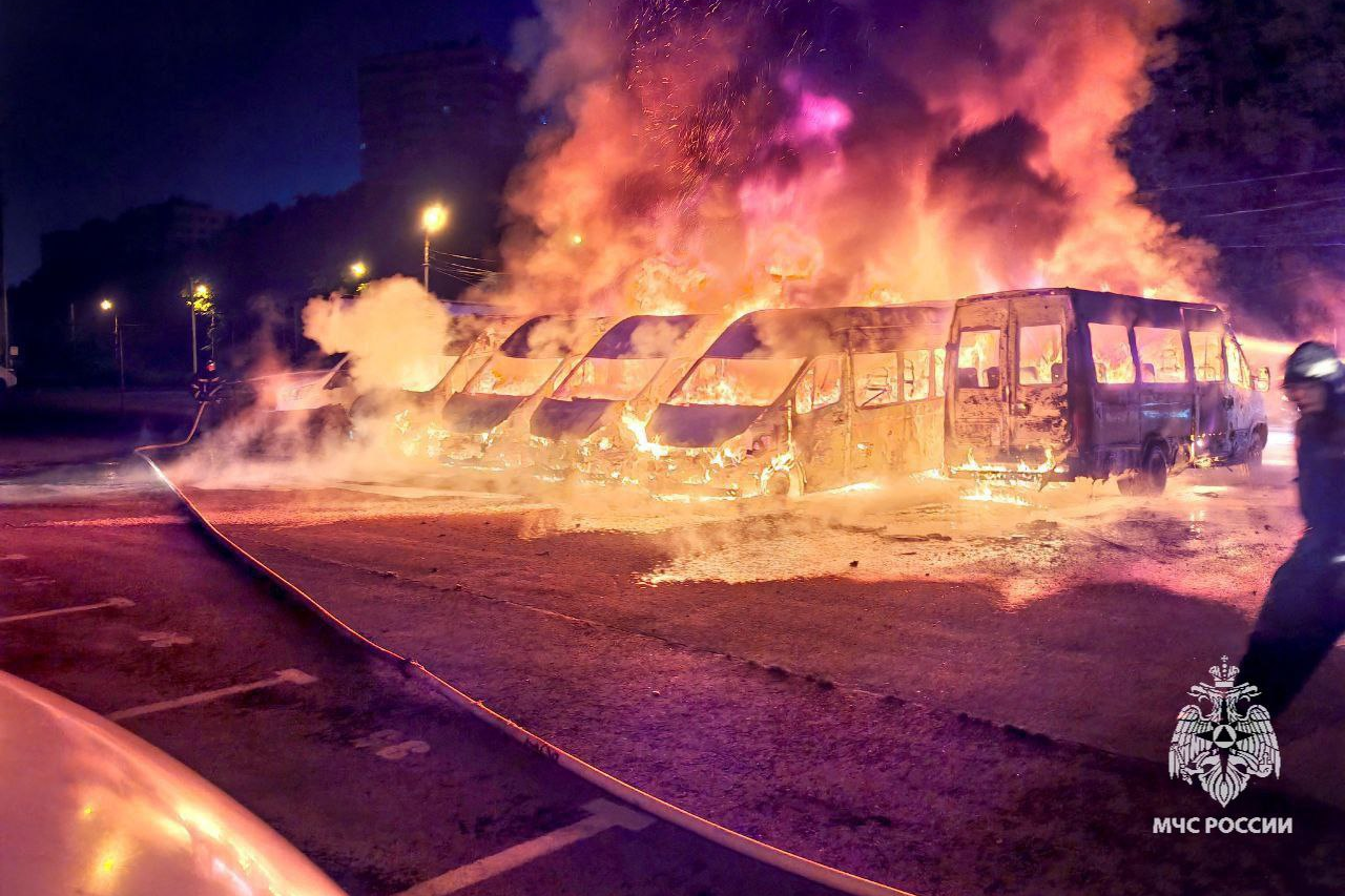 В региональном МЧС России рассказали, что спасатели потушили возгорание 11 транспортных средств, припаркованных на улице Аркадия Шипунова. Первые подразделения прибыли на место происшествия спустя четыре минуты. Пожарным понадобилось около получаса, чтобы справиться с огнем.