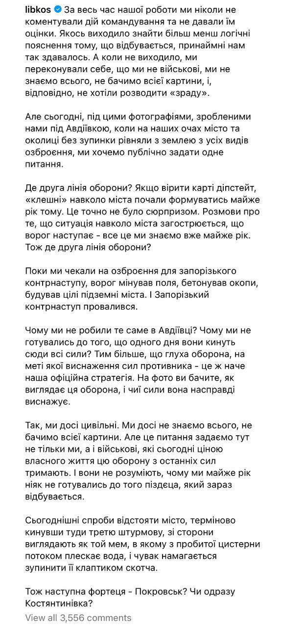 «Так что следующая «фортеця» - Покровск? Или сразу Константиновка?», - пишут Либеровы, критикуя командование ВСУ из-за отсутствия второй линии обороны в Авдеевке.