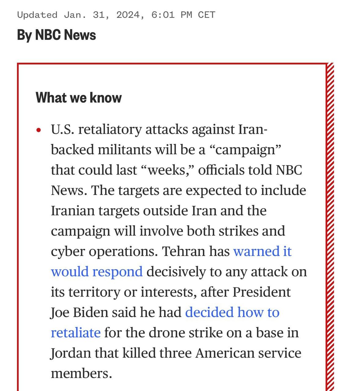 🇺🇸✖️🇮🇷Атаки США на Иран будут кампанией, которая может продлиться несколько недель – NBC