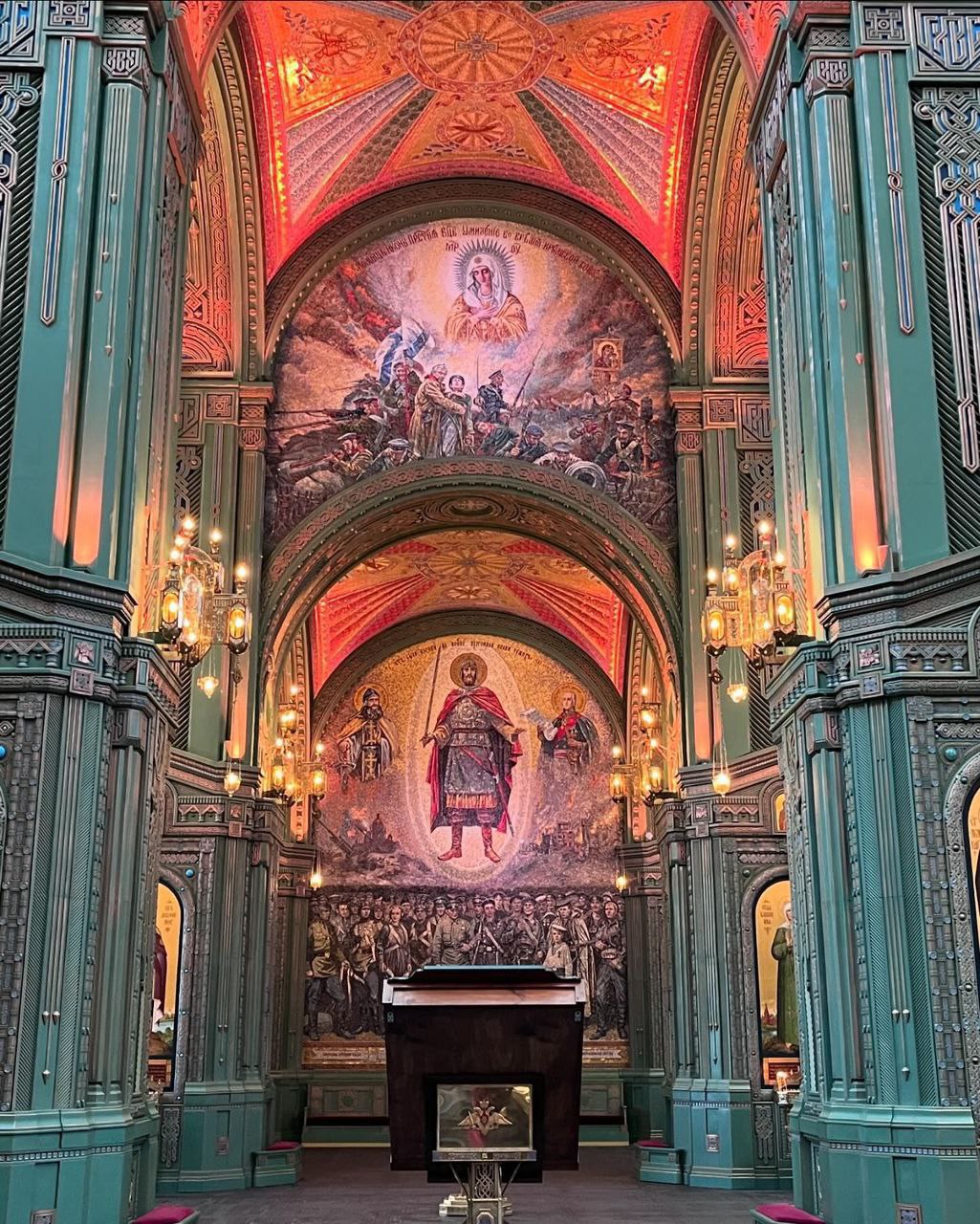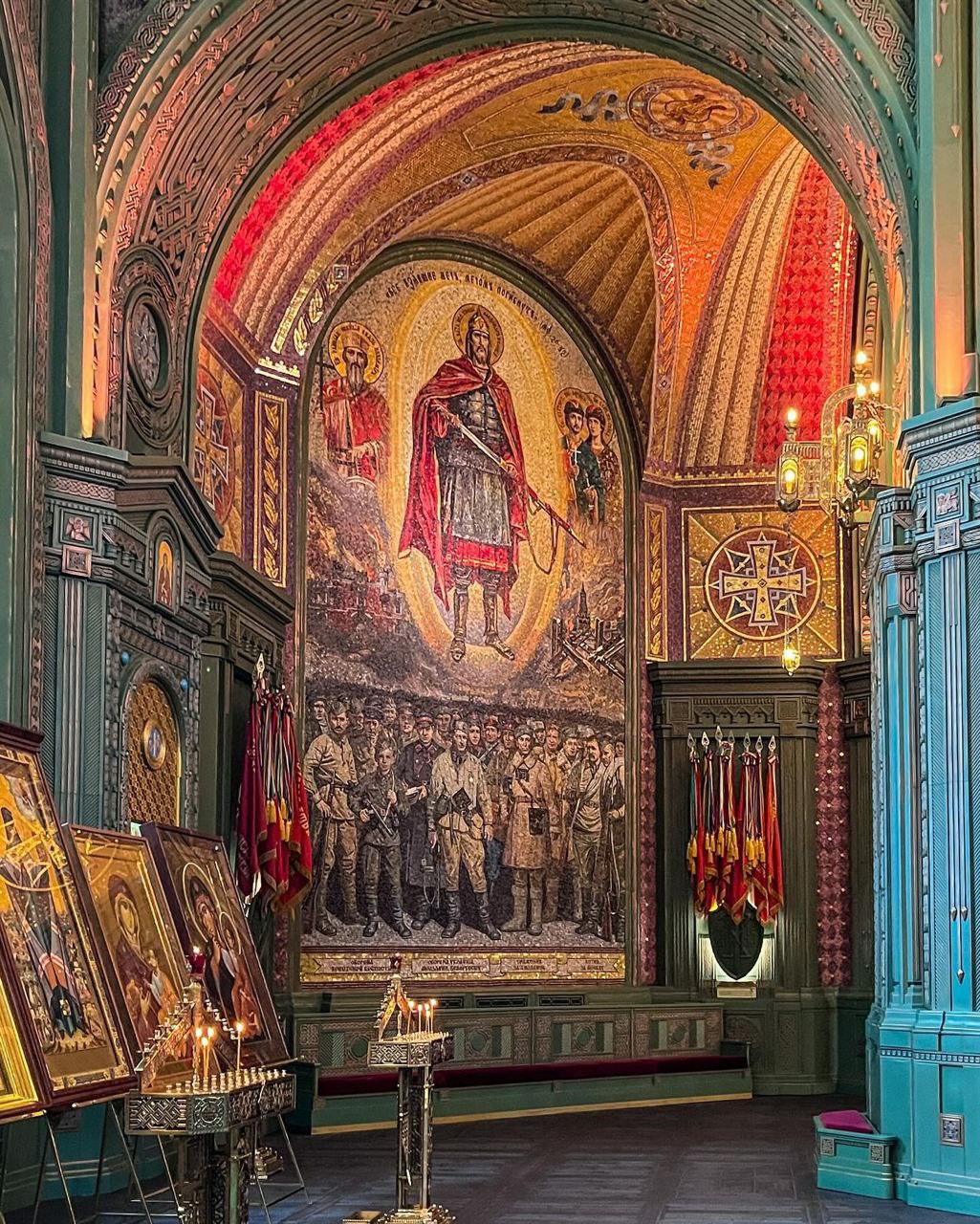 ΠΠ½ΡΡΡΠΈ Ρ ΡΠ°ΠΌΠ° ΠΊΠ°ΠΆΠ΄ΡΠΉ ΡΠ»Π΅ΠΌΠ΅Π½Ρ Π½Π°ΠΏΠΎΠ»Π½Π΅Π½ Π³Π»ΡΠ±ΠΎΠΊΠΈΠΌ ΡΠΌΡΡΠ»ΠΎΠΌ. ΠΡΡΠΎΡΠ° Π·Π²ΠΎΠ½Π½ΠΈΡΡ β 75 ΠΌ, ΡΡΠΎ ΡΠΈΠΌΠ²ΠΎΠ»ΠΈΠ·ΠΈΡΡΠ΅Ρ 75 Π»Π΅Ρ ΡΠΎ Π΄Π½Ρ ΠΠΎΠ±Π΅Π΄Ρ. ΠΠΈΠ°ΠΌΠ΅ΡΡ Π±Π°ΡΠ°Π±Π°Π½Π° Π³Π»Π°Π²Π½ΠΎΠ³ΠΎ ΠΊΡΠΏΠΎΠ»Π° β 19 ΠΌ 45 ΡΠΌ, Π½Π°ΠΏΠΎΠΌΠΈΠ½Π°Π΅Ρ ΠΎ 1945 Π³ΠΎΠ΄Π΅. ΠΡΡΠΎΡΠ° ΠΌΠ°Π»ΡΡ ΠΊΡΠΏΠΎΠ»ΠΎΠ² β 14 ΠΌ 18 ΡΠΌ, ΡΡΠΎ ΡΠΎΠΎΡΠ²Π΅ΡΡΡΠ²ΡΠ΅Ρ 1418 Π΄Π½ΡΠΌ Π²ΠΎΠΉΠ½Ρ. ΠΠΈΠ°ΠΌΠ΅ΡΡ ΡΠ°ΠΌΠΎΠ³ΠΎ ΠΊΡΠΏΠΎΠ»Π° β 22 ΠΌ 43 ΡΠΌ, ΠΌΠΎΠΌΠ΅Π½Ρ ΠΏΠΎΠ΄ΠΏΠΈΡΠ°Π½ΠΈΡ ΠΊΠ°ΠΏΠΈΡΡΠ»ΡΡΠΈΠΈ ΠΠ΅ΡΠΌΠ°Π½ΠΈΠΈ. Π ΠΌΠΎΠ·Π°ΠΈΠΊΠ° ΠΏΠ»ΠΎΡΠ°Π΄ΡΡ 2644 ΠΊΠ² ΠΌ ΠΏΠΎΡΠ²ΡΡΠ΅Π½Π° 2644 ΠΊΠ°Π²Π°Π»Π΅ΡΠ°ΠΌ ΠΎΡΠ΄Π΅Π½Π° Π‘Π»Π°Π²Ρ.