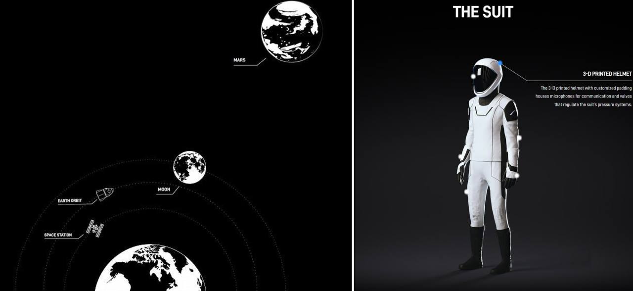 Всего четыре направления: орбита Земли, Международная космическая станция, Луна и Марс. Полеты будут выполняться на кораблях Dragon и Starship.