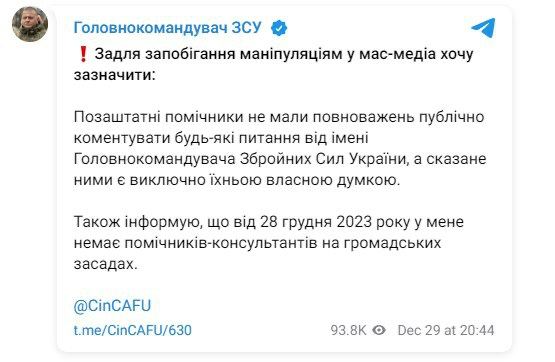π Β«ΠΠ½Π΅ΡΡΠ°ΡΠ½ΡΠ΅ ΠΏΠΎΠΌΠΎΡΠ½ΠΈΠΊΠΈ Π½Π΅ ΠΈΠΌΠ΅Π»ΠΈ ΠΏΠΎΠ»Π½ΠΎΠΌΠΎΡΠΈΠΉ ΠΏΡΠ±Π»ΠΈΡΠ½ΠΎ ΠΊΠΎΠΌΠΌΠ΅Π½ΡΠΈΡΠΎΠ²Π°ΡΡ Π»ΡΠ±ΡΠ΅ Π²ΠΎΠΏΡΠΎΡΡ ΠΎΡ ΠΈΠΌΠ΅Π½ΠΈ ΠΠ»Π°Π²Π½ΠΎΠΊΠΎΠΌΠ°Π½Π΄ΡΡΡΠ΅Π³ΠΎ ΠΠ‘Π£, ΡΠΊΠ°Π·Π°Π½Π½ΠΎΠ΅ ΠΈΠΌΠΈ ΡΠ²Π»ΡΠ΅ΡΡΡ ΠΈΡΠΊΠ»ΡΡΠΈΡΠ΅Π»ΡΠ½ΠΎ ΠΈΡ ΡΠΎΠ±ΡΡΠ²Π΅Π½Π½ΡΠΌ ΠΌΠ½Π΅Π½ΠΈΠ΅ΠΌ.