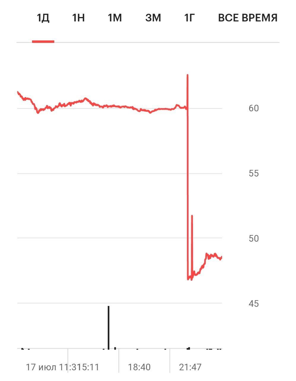Привилегированные акции «Сургутнефтегаза» упали почти на 25%, Мосбиржа объявила по ним дискретный аукцион. Это произошло из-за дивидендного гэпа: бумаги торгуются с понижением на величину дивидендов после окончания срока их приобретения под выплаты. Дивиденды «Сургутнефтегаза» составили 12,29 рубля на акцию, что при цене закрытия 17 июля предполагало дивидендную доходность более 20%