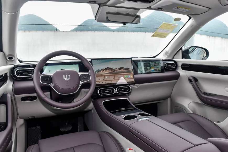 Внутри - технологичный и минималистичный салон без излишеств, но с акцентом на цифровую экосистему.