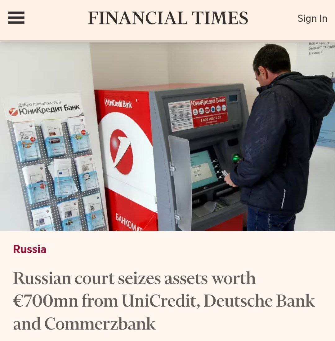 Три немецких банка – Deutsche Bank, Unicredit Bank и Commerzbank – лишились активов в России на €800 млн, сообщает Financial Times