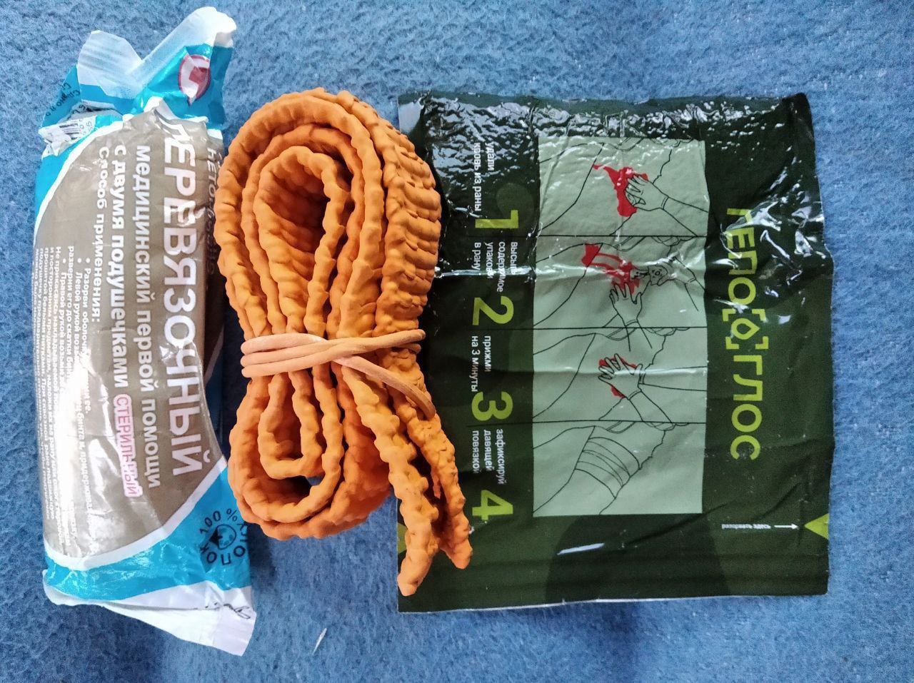 8. Так же рекомендуем постоянно носить с собой минимальный комплект перевязочных и кровоостанавливающих средств. Жгут или турникет, перевязочный пакет (можно в гражданском исполнении), кровоостанавливающий бинт (на фото).