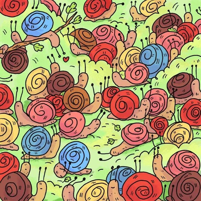 Проверка зрения: а слабо найти на картинке с улитками одну розу? У вас ровно 20 секунд, не больше!