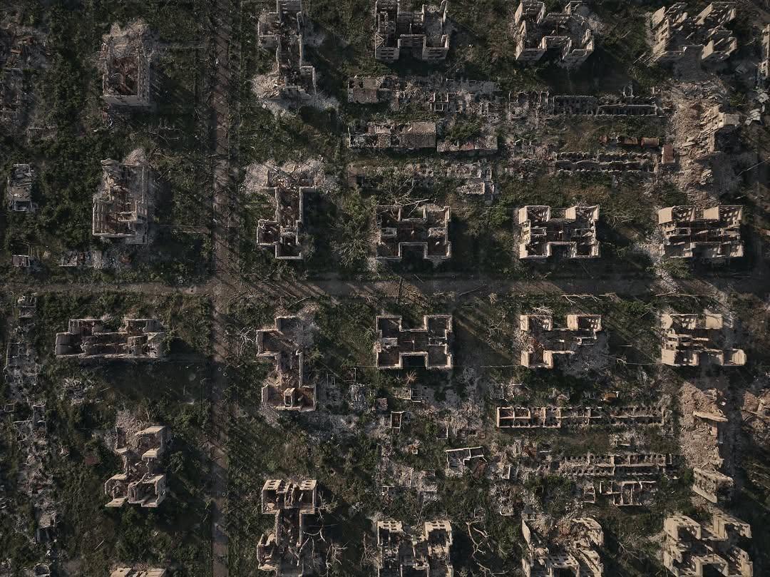 После полутора лет ожесточенных боёв почти весь город представляет из себя руины.