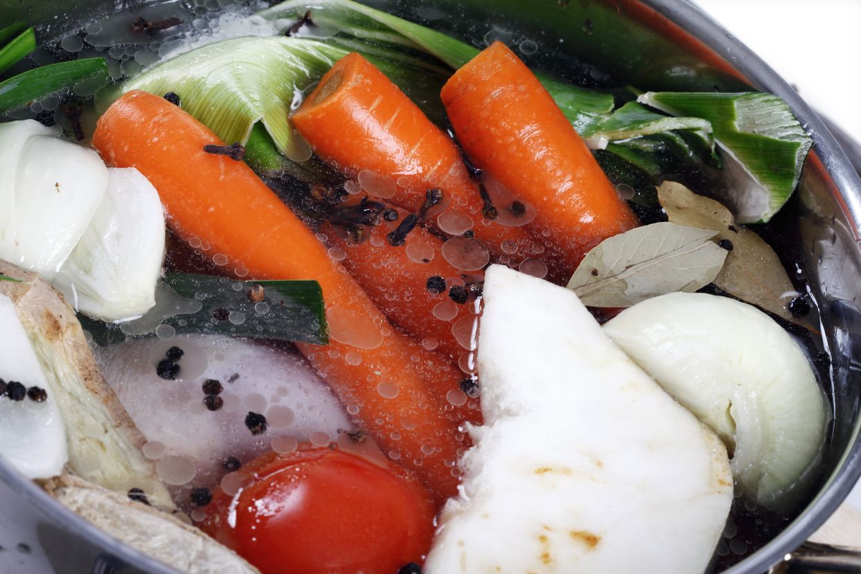 4. Залейте бульоном, доведите до кипения, накройте крышкой и готовьте около 20 минут, до мягкого состояния овощей.