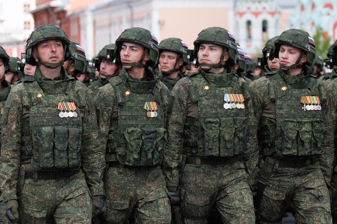 Во главе строя героев СВО Герой России подполковник Евгений Хабаров.
