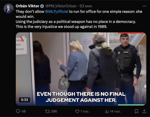 πΈ Β«ΠΠ½ΠΈ Π½Π΅ ΠΏΠΎΠ·Π²ΠΎΠ»ΡΡΡ ΠΠ°ΡΠΈΠ½ ΠΠ΅ ΠΠ΅Π½ Π±Π°Π»Π»ΠΎΡΠΈΡΠΎΠ²Π°ΡΡΡΡ Π½Π° Π²ΡΠ±ΠΎΡΠ°Ρ ΠΏΠΎ ΠΎΠ΄Π½ΠΎΠΉ ΠΏΡΠΎΡΡΠΎΠΉ ΠΏΡΠΈΡΠΈΠ½Π΅: ΠΎΠ½Π° ΠΏΠΎΠ±Π΅Π΄ΠΈΡΒ», β ΠΏΡΠ΅ΠΌΡΠ΅Ρ-ΠΌΠΈΠ½ΠΈΡΡΡ ΠΠ΅Π½Π³ΡΠΈΠΈ ΠΠΈΠΊΡΠΎΡ ΠΡΠ±Π°Π½ ΠΏΡΠΎΠΊΠΎΠΌΠΌΠ΅Π½ΡΠΈΡΠΎΠ²Π°Π» ΠΏΠΎΠ»ΠΈΡΠΈΡΠ΅ΡΠΊΡΡ ΡΠΈΡΡΠ°ΡΠΈΡ Π²ΠΎ Π€ΡΠ°Π½ΡΠΈΠΈ.