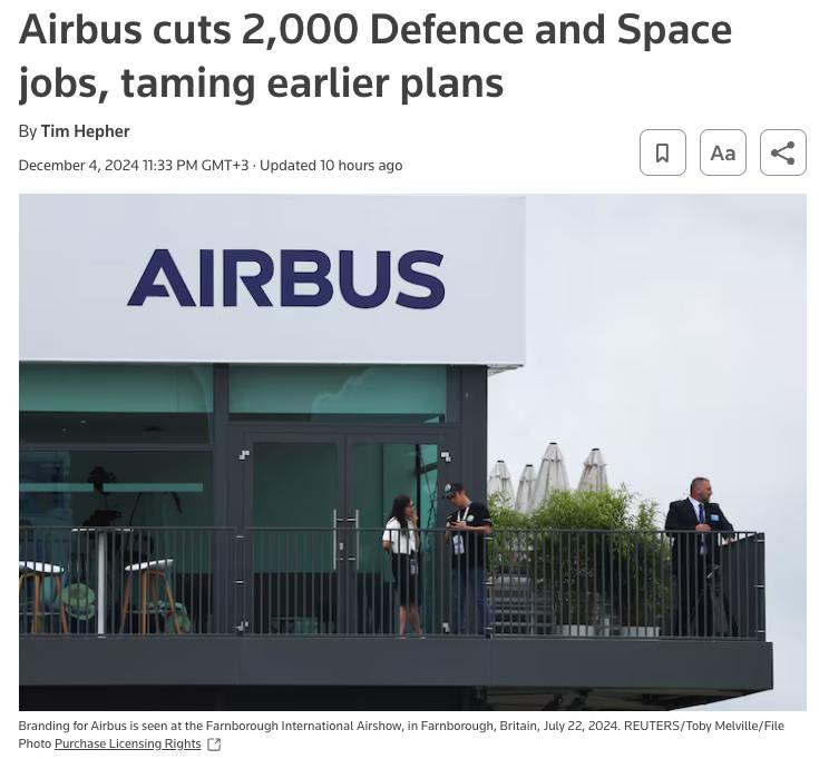 В Airbus увольняют две тысячи человек и уменьшают финансирование целых подразделений.