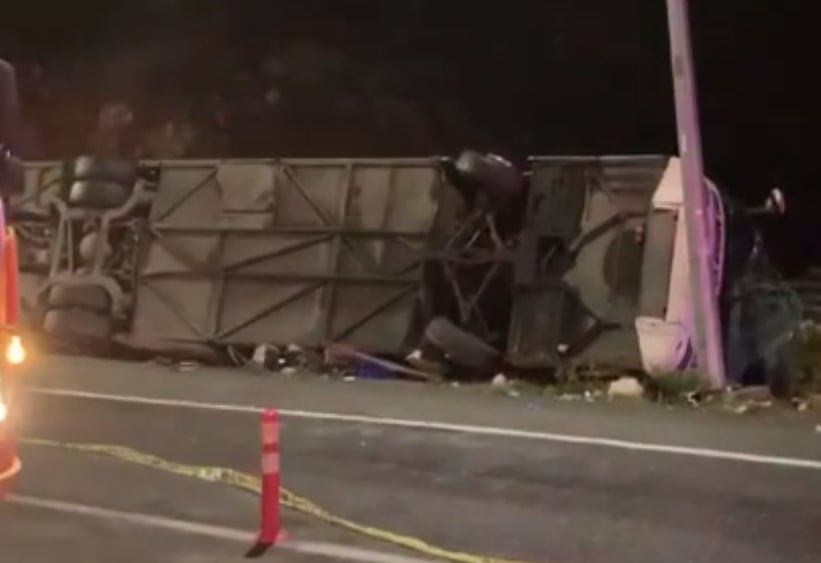 Автобус перевернулся после столкновения с ограждениями на выезде из туннелей Сарыер в районе Айдынчык. Причина столкновения неизвестна.