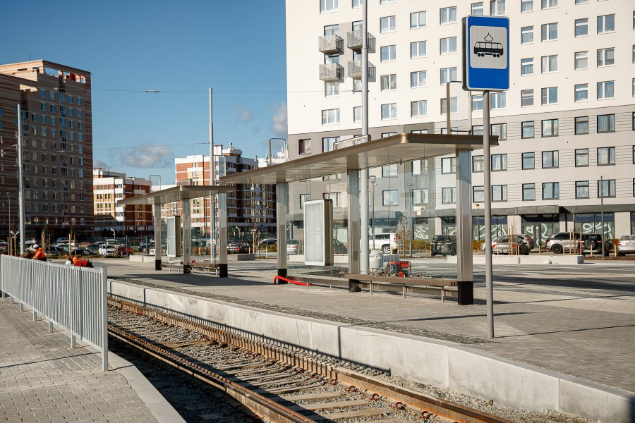 За время строительных работ проложили 1,5 километра трамвайных путей, установили 58 опор контактной сети, обустроили трамвайное кольцо на улице Окружной, а также построили коммуникации.