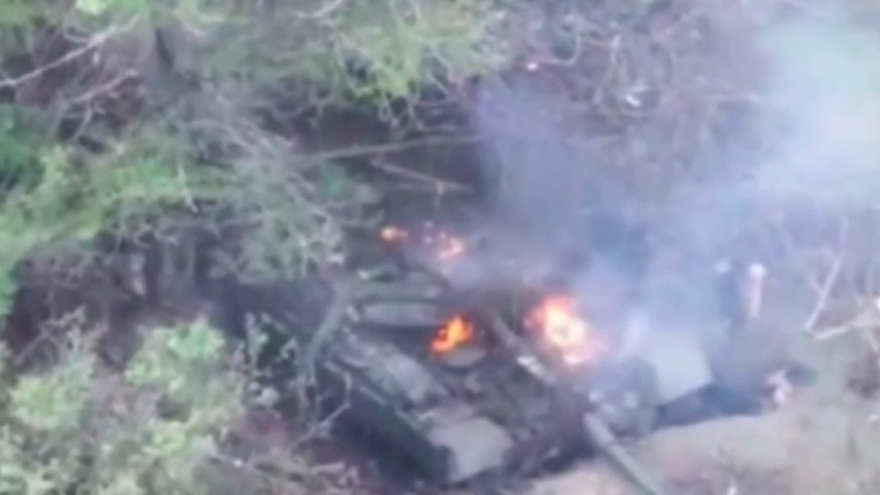 Сначала БПЛА обездвижил и поджог танк, а затем «Ланцет» добил его, вызвав детонацию боекомплекта.