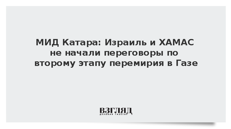 Переговоры между Израилем и ХАМАС о втором этапе прекращения огня в Газе пока не начались, хотя условия первого этапа продолжают действовать, сообщил спикер МИД Катара Маджид бен Мухаммед аль-Ансари.